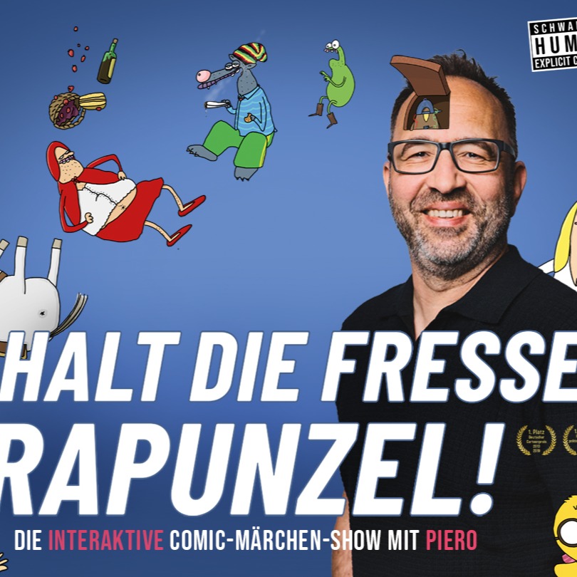 Auch in „Halt die Fresse, Rapunzel!“ kommen Pieros skurrile Märchenfiguren zu Wort, und das sogar öfter als dem Entertainer lieb ist. Die schrägen Charaktere grätschen ihm auf humorvolle Weise immer wieder in seine Geschichten und stellen ihn vor einige Herausforderungen, denn die Märchenfiguren aus dem Masztalerz-Universum sind von einer disneyhaften Leichtigkeit so weit entfernt wie Olaf Scholz von einer lockeren Tanzeinlage auf Tik Tok oder Tofu von Geschmack.